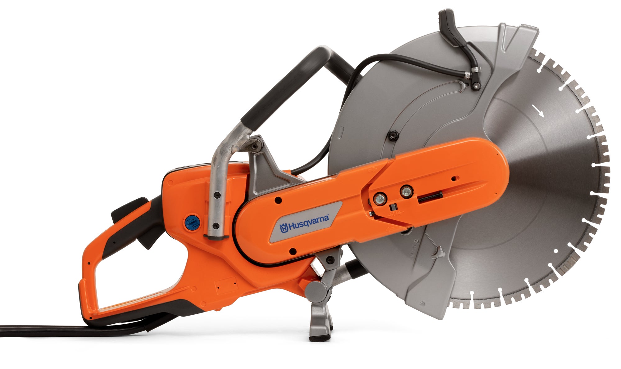 High-frequency handheld saw for wet cutting concrete and masonry up to 145mm deep, ideal for indoor structural work and retrofit openings.