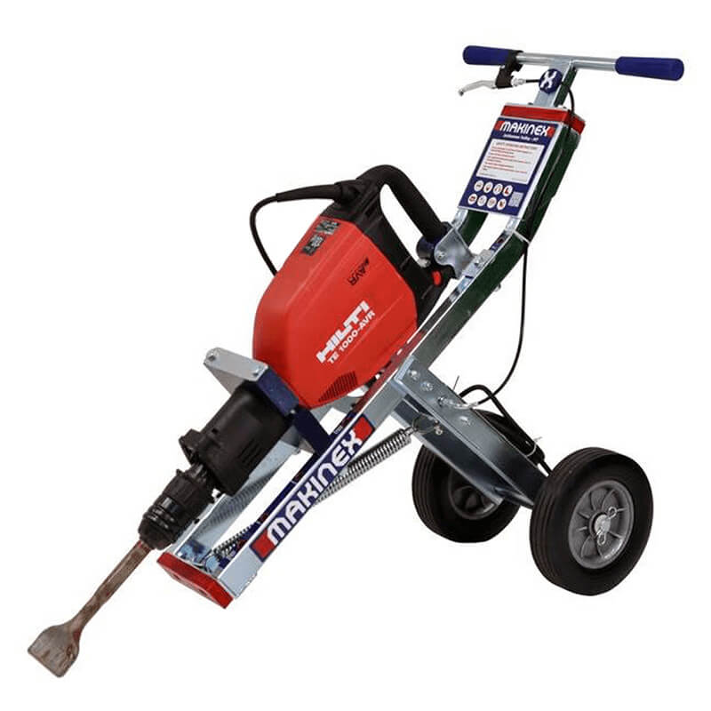Medium-duty electric demolition hammer with transport trolley for concrete breaking and slab removal, ideal for renovation and commercial fit-outs.